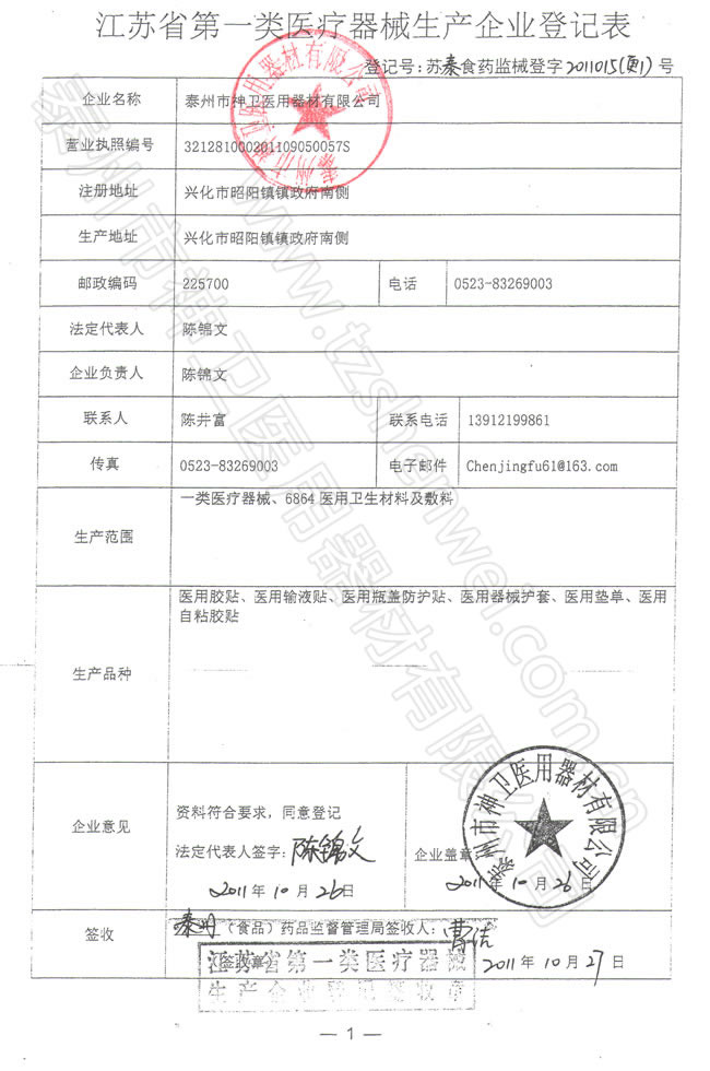 醫(yī)療器械生產(chǎn)登記表